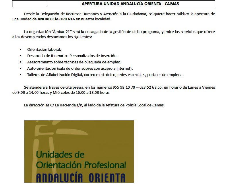apertura de una unidad de ANDALUCÍA ORIENTA en nuestra localidad.