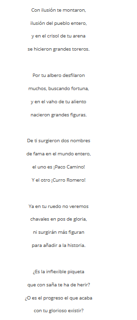 Como despedida a la mencionada plaza José Muñoz Cortina le dedicó el siguiente poema(primera imagen)